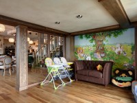 The family orientation of the restaurant is emphasized not only by nice interior, and warm cozy atmosphere, but also by large playroom for little guests.